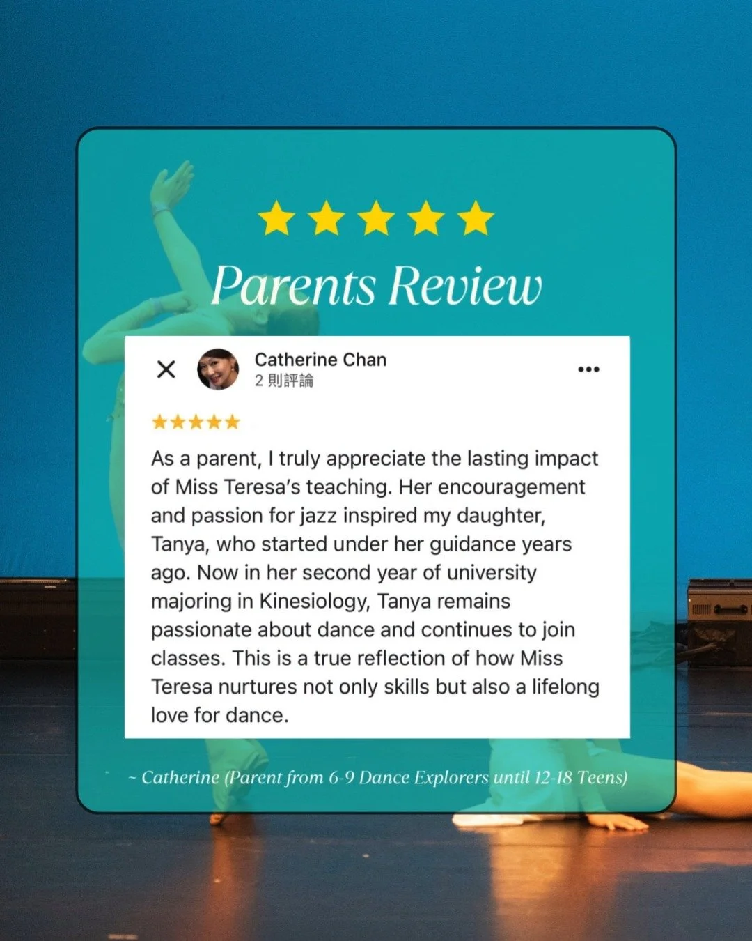 Led by Ms Teresa, a qualified teacher with 10+ years of experience, we specialise in AcroDance, Modern Jazz, and Lyrical/Contemporary for ages 2–18. Whether your child is taking their very first steps in dance or working towards advanced training, we’re here to guide them on their journey.