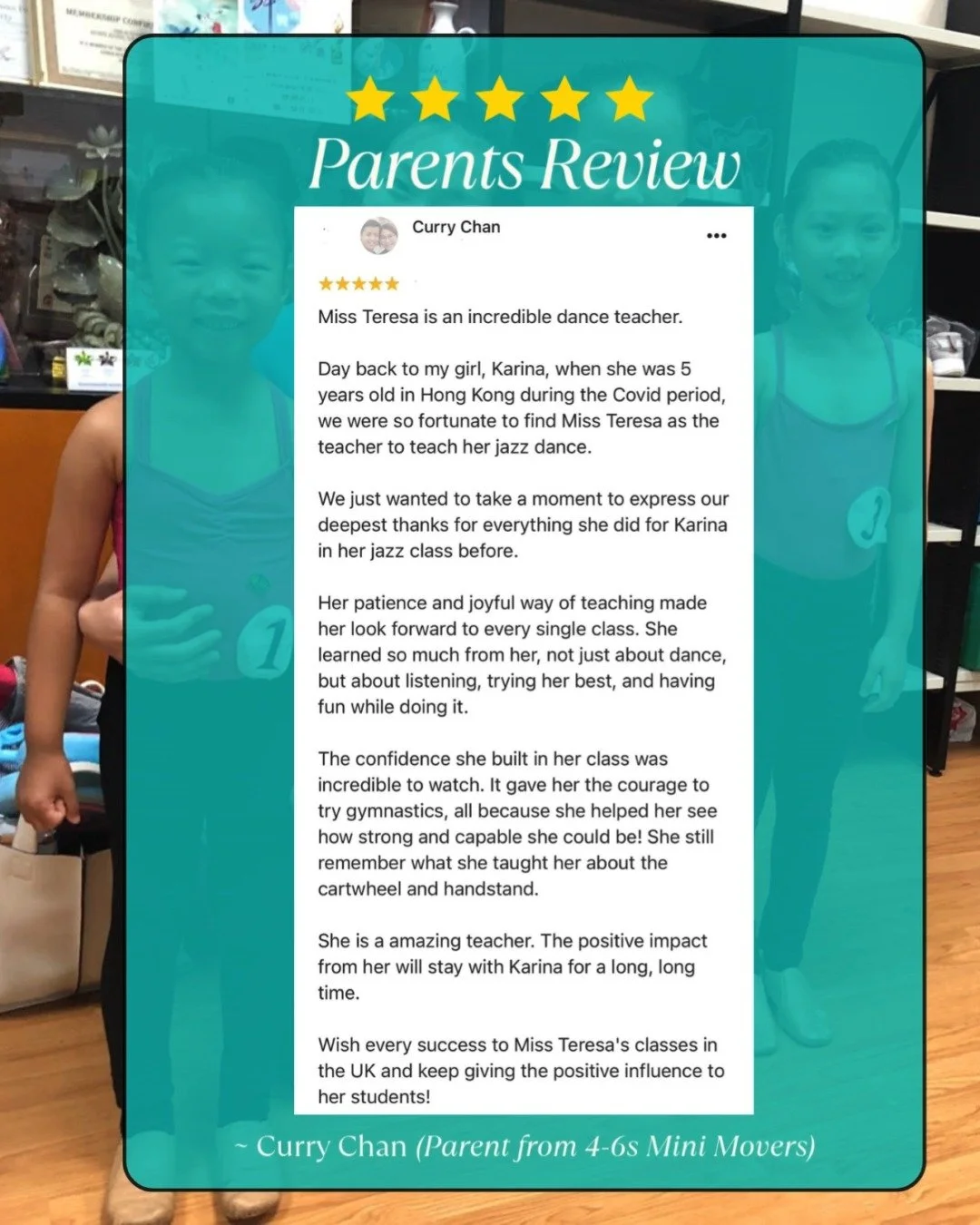 Led by Ms Teresa, a qualified teacher with 10+ years of experience, we specialise in AcroDance, Modern Jazz, and Lyrical/Contemporary for ages 2–18. Whether your child is taking their very first steps in dance or working towards advanced training, we’re here to guide them on their journey.